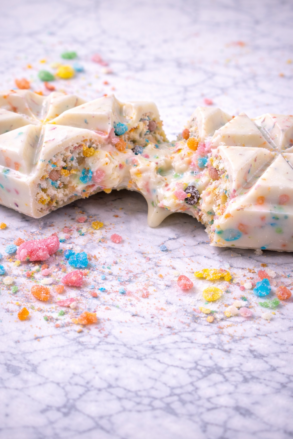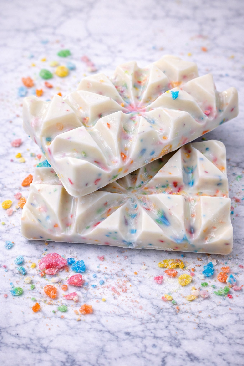 Brace your taste buds—this bar is pure rainbow chaos! Stuffed with cotton candy Pop Rocks, fruity cereal, and whipped rainbow cream, all wrapped in a dreamy layer of white chocolate, the Unicorn Explosion Bar is a sugar rush straight from a fantasy. It’s loud, it’s colorful, and it’s totally over the top—just the way unicorns like it.