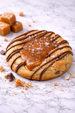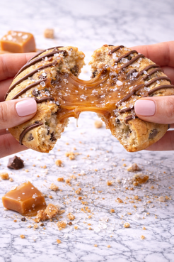 Indulge in six of our signature Deep Dish Chocolate Chip Cookies, each weighing a substantial half pound. These oversized treats feature a generous chocolate chip base infused with rich caramel and finished with a delicate sea salt accent that elevates the sweetness. The combination of buttery cookie, melted caramel, and the sophisticated salt balance creates a complex flavor profile that satisfies serious chocolate lovers. Perfect for sharing or savoring throughout the week.